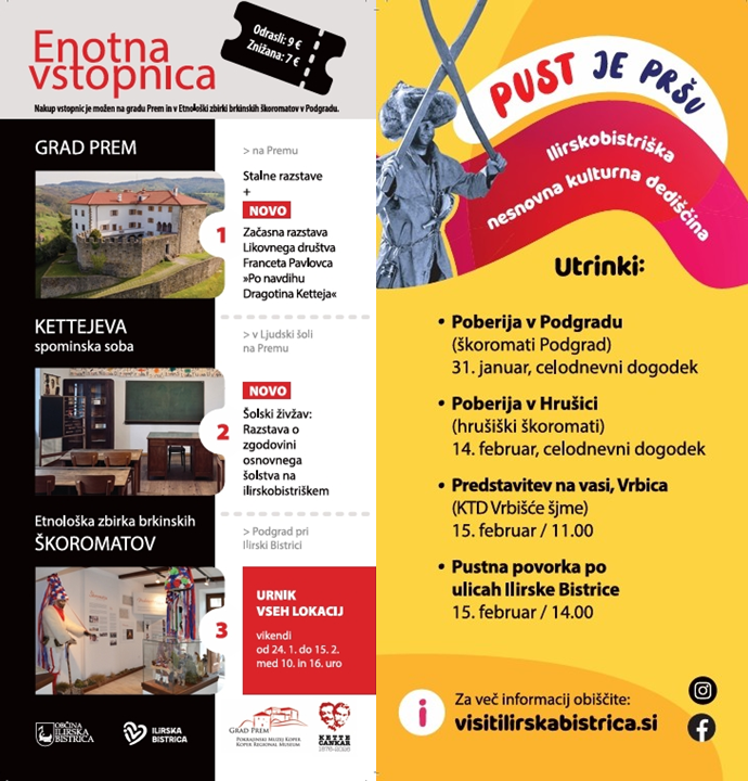 - nedelja, 15. 2. 2026 ob 14.00, po ulicah Ilirske Bistrice 29. pustna povorka